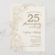 Convite de Aniversário de Casamento Ivory Gold Floral 25 anos. Design moderno minimalista com desenhos botânicos e fonte de letra script. Cartão de convite elegante perfeito para uma celebração sofisticada. Pode ser personalizado para qualquer ano de casamento. Convites impressos da Zazzle ou modelo digital para impressão instantânea.