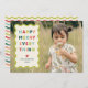 Let your full-size photo shine with this festive holiday photo card! This playful holiday card features a decorative, wavy frame on the left side. The greeting "Happy Merry Everything" is a non-traditional greeting that can apply to any and all holidays that take place during the holiday season. The words are made up of a variety of colors to add a touch of whimsy to the design. Just beneath the greeting is a tiny heart, and space for the customer's name. The back of the card features a coordinating wavy pattern. This fun card is perfect for kids!