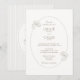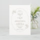 Elegant and chic. This modern lux wedding invitation card features a contemporary set of taupe fonts and calligraphy accents alongside a trendy oval floral frame. The back includes a subtle botanical pattern overlay against a soft ivory white background. This card feels intentional and makes a stylish statement. Across the collection, the thoughtful and stylish design brings a sense of cohesion and intention.