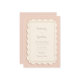 Introduce your event with a touch of timeless sophistication using this beautifully shaped stationery design. The invitation features a unique, die-cut scalloped edge that adds a soft, vintage-inspired wave to the silhouette, distinct from standard rectangular cards. The background is a soft, pale ivory or blush beige, providing a neutral and clean canvas for your typography. A double-line gilded border traces the interior, mirroring the rectangular shape and adding a subtle hint of metallic luxury without overpowering the minimalist aesthetic. This versatile and classic design is a flawless choice for a traditional church wedding, a sweet sixteen birthday party, or a charming bridal shower brunch. You might also select this understated style for a baby shower announcement, a sophisticated tea party, or a golden anniversary celebration where the focus is on elegant typography.