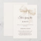 A soft ivory colored background, decorated with a bow. Personalize and add a name and party details.