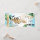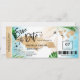 República Dominicana Punta Cana Destinding Beach Wedding Embaraçando Bilhete de Passagem Dourado Salve a data com coração e ícone de avião com folhas tropicais