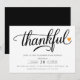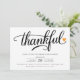 Celebre o Dia de Ação de Graças com seus entes queridos com este na moda e um convite elegante. O convite apresenta uma letra de caligrafia preta, dizendo "grato", com um coração marcado sobre fundo branco. A maneira perfeita de convidar seus convidados para uma noite memorável de comida, diversão e palhaçada.