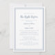 "The Night Before", simples e empoeirado, azul e branco, convite para janto de ensaio de casamento, apresenta um simples design minimalista contemporâneo com uma dupla borda de quadros em azul empoeirado em um fundo branco nítido. Personalize a design de casamento com seus detalhes em letras de tendências e roteiro em azul. As costas combinam em azul sólido. Para obter melhores resultados, substitua os detalhes do modelo com seus próprios detalhes, deixando espaço entre os parágrafos como no exemplo e use todas as letras minúsculas quando especificado. Envie um email para invitationsuites@gmail.com com perguntas ou solicitações de cores personalizadas.