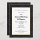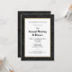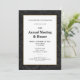 Convite de jantar anual de negócios com padrão botânico preto elegante apresenta um padrão botânico elegante preto e cinza. Perfeito para funções corporativas, eventos de caridade, celebrações de Natal e Feriados, festas de aposentadoria, coquetéis, celebrações de aniversário, festas de aniversário e eventos especiais. Detalhes adicionais podem ser adicionados no verso ou você pode excluir o texto opcional e o retângulo branco deixando o padrão botânico.