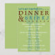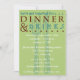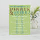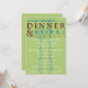 Convite de jantar com garfo e faca grandes e desbotados em um fundo verde brilhante. Texto contemporâneo grande em marrom e azul preenche o cabeçalho do convite de ponta a ponta, e convida seus convidados a se reunirem para jantar e bebidas. Personalize com as informações da sua festa. Escolha seu próprio papel, fonte, tamanho e cor.