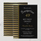Um convite de jantar de 40º aniversário surpresa elegante moderno com listras chevron em preto e dourado.