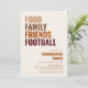 Celebre a temporada com este Convite de Jantar de Ação de Graças de Comida Família Amigos Futebol. Com tipografia ousada e cores ricas de outono, este design moderno captura o espírito das tradições de Ação de Graças com um toque lúdico de comida, reuniões e futebol. Perfeito para uma festa de jantar de feriado, um potluck de outono ou uma festa rústica de fazenda, este modelo editável é fácil de personalizar para sua celebração.