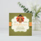 Um peru de Ação de Graças fofo e um delicado padrão damasco verde escuro dá um visual rústico elegante a este convite de Ação de Graças.
