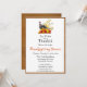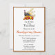 Use este convite de modelo festivo para convidar sua família e amigos para o jantar de Ação de Graças. Este convite apresenta um design de colheita com um recorte sobreposto de um peru selvagem e folhas de abóbora com glitter dourado. O verso apresenta uma impressão de couro falso cor de abóbora por toda parte.