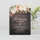 Convide seus entes queridos para se reunirem e agradecerem com este elegante convite para o jantar de Ação de Graças. Com suaves flores vintage, luzes de corda brilhantes e um fundo de madeira escura rico, este design personalizável captura a calidez e o charme de uma noite de outono aconchegante. Perfeito para banquetes familiares, celebrações do Dia de Ação de Graças entre amigos ou jantares formais de Natal.