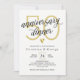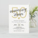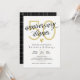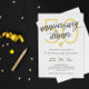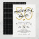 Convite de jantar de aniversário de casamento elegante em preto e branco com detalhes dourados.