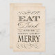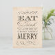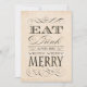 Convite elegante personalizável com as palavras Coma, Beba e seja Muito, Muito, Alegre. Adequado para aniversários, nascimentos, degustações de vinho, festas de feriado e muitas outras ocasiões.