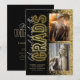 Celebre os dois formandos com esses convites modernos para jantar de formatura, apresentando fotos dos formandos, um fundo preto elegante, brilho dourado falso, a frase "vamos celebrar os formandos" em uma fonte cursiva e um letreiro neon dourado, e um modelo de texto elegante e fácil de personalizar.