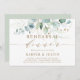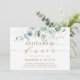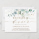 Este convite para jantar de ensaio apresenta eucalipto pintado à aquarela, folhas verdes botânicas e brilho dourado com escrita dourada.