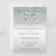 Convites feitos sob encomenda elegantes, personalizados do jantar de ensaio do casamento de prata com as jóias glittery bonitas dos sequins de uma imagem impressa da prata, gemas, teste padrão do brilho, arcos impressos brilhantes bonitos, sofisticados do azul/turquesa da cerceta e fitas e diamantes digitais bonito bling jóias e o texto cinzento escuro em um fundo de prata do inclinação. NOTE POR FAVOR: Estes são gráficos impressos plano - nenhumas sequins reais, arcos ou peças levantadas.  O texto, a pia batismal e a cor do texto podem tudo ser personalizados. Se você precisa o auxílio que personaliza seu produto por favor contacte-me através de minha loja. Eu estarei feliz ajudar. Eu tenho produtos de harmonização para casamentos em minha loja.