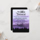 Este convite caracteriza uma opinião superior da montanha de um vale com a silhueta dos pinheiros da floresta que alinham a parte inferior. Trações nevoentas da névoa através do vale. O esquema de cores é lavanda roxa e preto. Personalize este convite para seus ensaio do casamento e partido de comensal. A parte traseira tem o espaço para mais informação se você precisa de fornecer mais detalhes. Aperfeiçoe para amantes de natureza, estes convites trabalham bem para uns temas exteriores, da natureza, os rústicos, ou da montanha. Eu tenho este design disponível em outras cores. Se você não encontra o que você está procurando para satisfazer a mensagem mim.