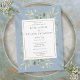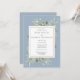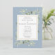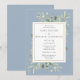 Com folhas delicadas pintadas à aguarela, este convite de jantar de ensaios de casamento botânico elegante pode ser personalizado com as informações do seu jantar de ensaios, com um fundo azul empoeirado. Desenhado por Thisisnotme