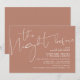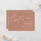 Planejando uma celebração de Jantar de Ensaios de casamento com a Noiva e o Noivo, antes do seu grande dia? Convide os convidados com este Cartão de Convite de Jantar de Ensaios de Casamento de elegância minimalista, em tons terrosos rústicos de terracota. Adicione os detalhes do jantar de ensaios na fonte / letra correspondente.