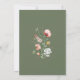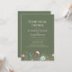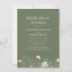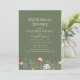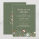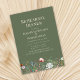 Um convite para jantar de ensaio terroso em verde-oliva com delicadas flores silvestres dispostas em uma composição botânica inspirada em um prado. O fundo quente em verde-oliva e os detalhes florais naturais criam uma atmosfera romântica do interior, perfeita para celebrações pré-casamento.