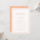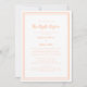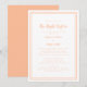 "O Dia Anterior", convite de jantar de ensaio de casamento de pêssego e branco simples e chique apresenta um design minimalista contemporâneo simples com uma borda de moldura dupla em pêssego clássico em um fundo branco crocante. Personalize o design do casamento com seus detalhes em letras e fontes da moda. O verso combina com pêssego sólido. Para obter os melhores resultados, substitua os detalhes do modelo pelos seus próprios detalhes, deixando espaço entre os parágrafos como no exemplo e use letras minúsculas onde especificado. Envie um e-mail para invitationsuites@gmail.com com perguntas ou solicitações de cores personalizadas.