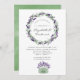 Convite de jantar de ensaio de casamento de lavanda trendy com fundo de lavagem de aquarela verde-sage.
