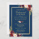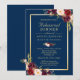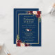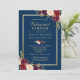 Crie convites para o jantar de ensaio de casamento instantaneamente online com este "Modelo de Convite de Moldura Dourada Floral Burgundy Azul Marinho" para combinar com o estilo, as cores e o tema do seu casamento.
