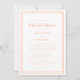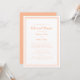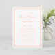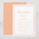 Convite simples e chique em pêssego e branco para jantar de ensaio de casamento apresenta um design minimalista contemporâneo simples com uma borda de moldura dupla em pêssego sobre um fundo branco crocante. Personalize o design do casamento com seus detalhes em letras e caligrafia da moda em pêssego. O verso combina com pêssego sólido. Para obter os melhores resultados, substitua os detalhes do modelo pelos seus próprios detalhes, deixando espaço entre os parágrafos como no exemplo e use letras minúsculas onde especificado. Envie um e-mail para invitationsuites@gmail.com com perguntas ou solicitações personalizadas.