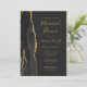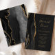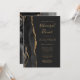 A borda esquerda deste convite de ensaio de casamento moderno e elegante apresenta uma borda de ágata em aquarela preta aparada com brilho dourado falso. O texto personalizável combina caligrafia dourada, fontes copperplate e itálico em um fundo preto claro. O verso apresenta um design de ágata preto e dourado correspondente.