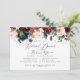 Aquarela rústica boho com verde e rosas penduradas em borgonha, rosa desbotado e azul-marinho. Acentuado com convites de jantar de ensaio com caligrafia elegante e moderna romântica. Cor de fundo DIY. Copyright © 2016-2019 Bombino Designs.