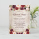Convite de Jantar de Rehearsal Floral Rosa Borgonha Madeira Rústica.