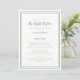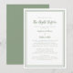 "O Dia Anterior", convite de jantar de ensaio de casamento simples e sofisticado em verde salvia e branco apresenta um design minimalista contemporâneo com uma borda de quadro duplo em verde tendência em um fundo branco crocante. Personalize o design do casamento com seus detalhes em letras e caligrafia na moda em verde. O verso combina com verde sólido. Para obter os melhores resultados, substitua os detalhes do modelo pelos seus próprios detalhes, deixando espaço entre os parágrafos como no exemplo e use letras minúsculas onde especificado. Envie um e-mail para invitationsuites@gmail.com com perguntas ou solicitações de cores personalizadas.
