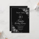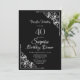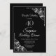 Um convite jantado Surprise aniversário de 40 anos preto-e-branco com cantos diagonais do local do ornamentado para enquadrar o texto branco.