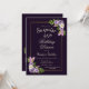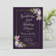 Um aniversário de 40 anos surpreendente, roxo e lavanda, janta convite de festas, com penas roxas e púrpuras e delicadas folhas verdes de samambaia.