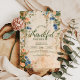 Celebre o Dia de Ação de Graças em estilo com este design floral azul e laranja rústico com flores de aquarela delicadas e verde. Perfeito para as reuniões do outono, banquetes de colheita e comemorações sazonais da família, este design elegante dá um tom caloroso e acolhedor para o seu janto especial.