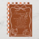 Capture o charme de um feriado nostálgico com nosso Janto de Ação de Graças de Coquette Retro! Este design digital apresenta uma mistura deliciosa de ilustrações capríicas — um peru gracioso, uma fatia de torta de abóbora e estrelas retrorativas — todas emolduradas por um arco elegante. Perfeito para hospedar sua reunião de Amizade ou janto familiar íntimo, este modelo de convite 5x7 dá um tom de nostalgia quente e caprichosa. A parte traseira apresenta um padrão retrorreflector complementar para uma sensação profissional acabada.