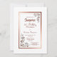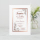 Um elegante convite de festas ouro/cobre revestido de aniversário de 21 anos surpresa floral revestido por um rosa de janta com pinças florais de ouro quente nos cantos diagonais e texto burgundy.