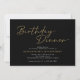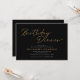 Simples e elegante convites de janto de aniversário com texto de script "Janto de aniversário" em uma cor amarela ouro em um fundo preto contrastante. Personalize com os detalhes do evento.