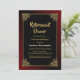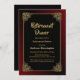Jante de aposentadoria preta convite de festas com um quadro de ouro ornamentado com uma borda externa vermelha ombre para completar o design criando um convite vibrante para sua ocasião especial.