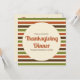 Frente: as faixas verdes, marrons e brancas antigas acompanham o texto de exibição que você pode editar. (Mostrado: Junte-se a nós para o Janta de Ação de Graças, quinta-feira, 23 de novembro, 20xx). Voltar: Você pode editar o modelo de convite para janta de Ação de Graças para mostrar a data, hora, local e detalhes de RSVP para a sua celebração de Ação de Graças.