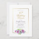 Um convite de festas de janto floral, cor-de-rosa e azul, bordado em ouro.