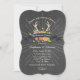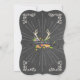 Convocação de Janto de ensaio correspondente dos pais do noivo. Perfeito para casamentos ao ar livre, russos, de estilo country fair. Se o seu dia for planejado para ser informal e na natureza, como num parque, num lago ou na floresta, esse estilo antigo de celeiro será ajustado. Um fundo antiquado do quadro de ardósia com sua coloração natural de cinza de carvão suave tem um elemento de design de explosão solar vintage com um banner de fita do quadro que diz, "Sr. & Sra." As flores silvestres de cor alagada à mão, cor-de-rosa, lavanda, laranja roxo e amarela, são pintadas por Audrey Jeanne Roberts. Eles são emparelhados com um conjunto de veados e pergaminhos de guincho de canto de folha desenhados à mão. No verso está o mesmo design com seus nomes no giz na faixa.