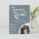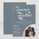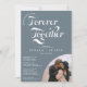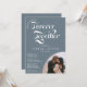 Praticando para sempre juntos! O vamos comemora nossa noite de ensaio de casal favorita antes do grande dia com esta caligrafia típica e elegante retro vintage Reaudisal Janto Script em branco elegante clássico em azul empoeirado com uma foto em forma arquitetada ao lado. Quando retro encontra o toque moderno.