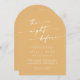 Este convite para janto de ensaio de arco amarelo-marigold é perfeito para uma noite minimalista antes do ensaio de casamento. A design boêmica moderna, colorida e amarela brilhante, apresenta uma caligrafia rústica simples com um estilo único, mas clássico.