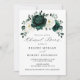 Elegante Verde esmeralda verde e janto de ensaio botânico floral branco de marfim Convite com rosas brancas e elegantes folhas de cor aquosa de eucalipto. Entre em contato comigo para obter ajuda sobre a personalização ou se você precisar de outro produto com este design.