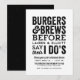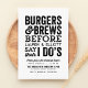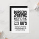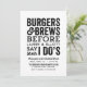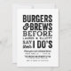 Burgueiros e arpões antes que o casal diga que eu faço! Este convite para o janto sobre o tema da cervejaria é uma maneira divertida de convidar amigos e familiares para comemorar a noite antes do casamento. Personalizado para incluir os nomes dos casais, este pré-convite de casamento apresenta texto negro em negrito sobre um fundo branco (não se trata de texto, mas apenas impresso para se parecer com ele). Isso também funciona bem para uma festa de noivado casual, churrasco ou churrasco de noivado, uma despedida de solteiro e muito mais. Personalize todos os detalhes da parte. A decoração do partido correspondente também está disponível na coleção exclusivamente por Lea Delaveris Design. Também disponível como um convite de festas de janto de ensaio digital.