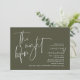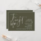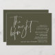 Na Noite Anterior. Design moderno romântico minimalista temático, cartão de convite para janto de ensaio de casamento (em verde-oliva, tema de orientação paisagística). Planejar uma celebração do Janto de ensaio do casamento com a futura noiva e futura noiva, antes do seu grande dia? Convide os convidados com este Cartão de Convite para Janto de Ensaio de Casamento perfeito. Edite-o facilmente com seus detalhes de convite de janto de ensaio. O cartão de convite disponível em / cópias impressas e em arquivos digitais descarregáveis.