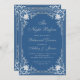 Este elegante convite de janto de ensaio azul-prata com ar vintage tem um falso quadro de folha de alumínio ornamentado com decorações barrocas elegantes num fundo azul clássico. o título, a ocasião e o nome são escritos em caligrafia elegante. Todo texto pode ser personalizado e tem uma cor de cinza de prata semelhante à falso quadro prateado. A safra, quadro de ornamentado, baseia-se numa antiga ligação francesa ao cobrir de livro, de Georges Mercier (1885-1939) - Madame de Maupin, por Theophile Gautier, edição de 1911, agora no dominio público.