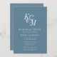 Cartão de Convite para Janto de Ensaio de Casamento de Monograma Clássico Elegante Azul Dusty. Celebre o seu dia especial com esta elegante e bela carta de convite para casamento para embelezar a sua ocasião especial. Todos os textos estão pré-organizados para que você personalize fácil e rapidamente com seus próprios detalhes.