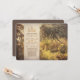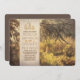 Convite de ensaio russo para janto com belas paisagens florestais e texto de convite de janto para ensaio escrito no antigo conselho de madeira. Romântica convida para o seu janto de ensaio no campo, na floresta, com spruces e outras árvores selvagens decoradas com luzes de cordas.